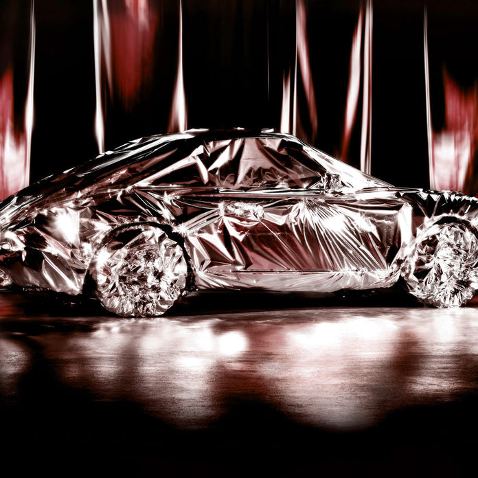 Christo packaged pretty much everything in his artistic life, but never a car. René Staud remembers the packaging artist with his picture Homage To Christo on aluminum, which is varnished several times and finally sealed with SWISSVAX wax to create a unique look.